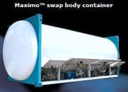 The MaximoTM swapbody offers the air gas industry a wide range of high payload cryogenic containers ranging in capacity from 26000 litre to 44000 litre and in working pressures from 2 to 22 bar, with optimised units in Nitrogen, Oxygen and Argon as well as more specialised units in Ethylene, Nitrous Oxide and LNG.